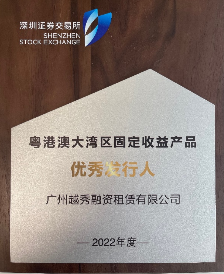 越秀租赁荣获深交所2022年度“绿色发展固定收益产品优秀发行人”“粤港澳大湾区固定收益产品优秀发行人”奖项