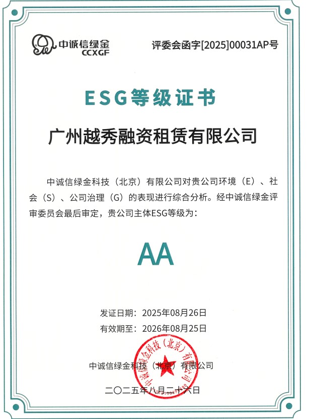 2025年9月越秀租赁ESG评级提升至AA级